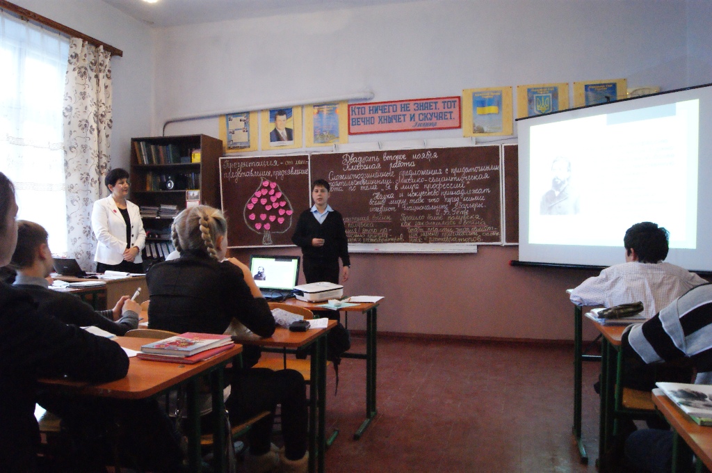 нестандартних, нетрадиційних. Саме нестандартні уроки - один із важливих засобів навчання, адже вони сприяють формуванню стійкого інтересу до навчання, знімають напругу, допомагають формувати навички навчальної діяльності, емоційно впливають на дітей, завдяки чому в них формуються міцні, глибокі знання. ![]() Зразком таких уроків були відкриті уроки під час роботи двох практичних районних семінарів з правознавства та російської мови. Це урок на тему «Громадянство України» в 9-А класі, вчитель Росецька Н.В. та уроки російської мови в 6-Б класі на тему «Народные умельцы и игрушки» (вчитель Паращук Л.В.), урок в 9-А на тему «Сложноподчиненное предложение. Лексико-семантическая работа по теме «Я в мире профессий»» (вчитель Ковалишена Н.І.). Це також відкриті уроки в 5-А класі на тему «Площа прямокутника» (вчитель Продан К.М.), з хімії в 9-А класі на тему «Електролітична дисоціація», з української мови в 1-А класі (Радзивілова Г.О.), урок з українського читання в 1-Б класі (Гліченко Л.І.), урок з основ здоров’я в 2-Б класі (Соловйова А.П.), урок з української мови в 4-Б класі (Гунич Н.М.), уроки фізкультури в 5-А класі (Ковалишен А.В), в 6-А класі (Радзивілов В.В). за розділом «Акробатика». Урок - не самоціль. Це інструмент виховання та розвитку особистості. Тому всі вчителі на своїх уроках показали вміння реалізовувати проблему особистісно-орієнтованого навчання учнів та впровадження інноваційних педагогічних технологій в навчально-виховний процес, а також велику 109 учнів школи стали призерами олімпіад, зайнявши І, ІІ, ІІІ місця: